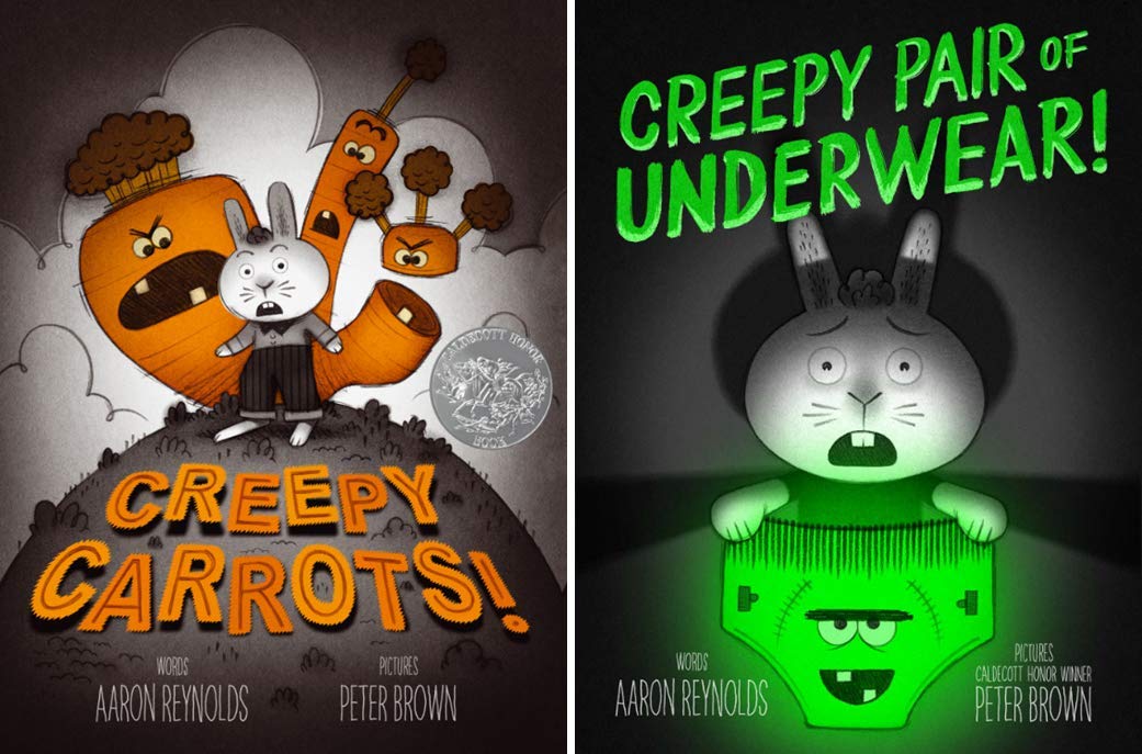 This spooky-yet-adorable set of the Creepy Carrots series is sure to make your child HOPPY as can be! The set combines two mildly HARE-raising stories from the celebrated team of Aaron Reynolds and Caldecott Honor Winner Peter Brown. Includes Creepy Carrots! and Creepy Pair of Underwear!
