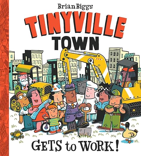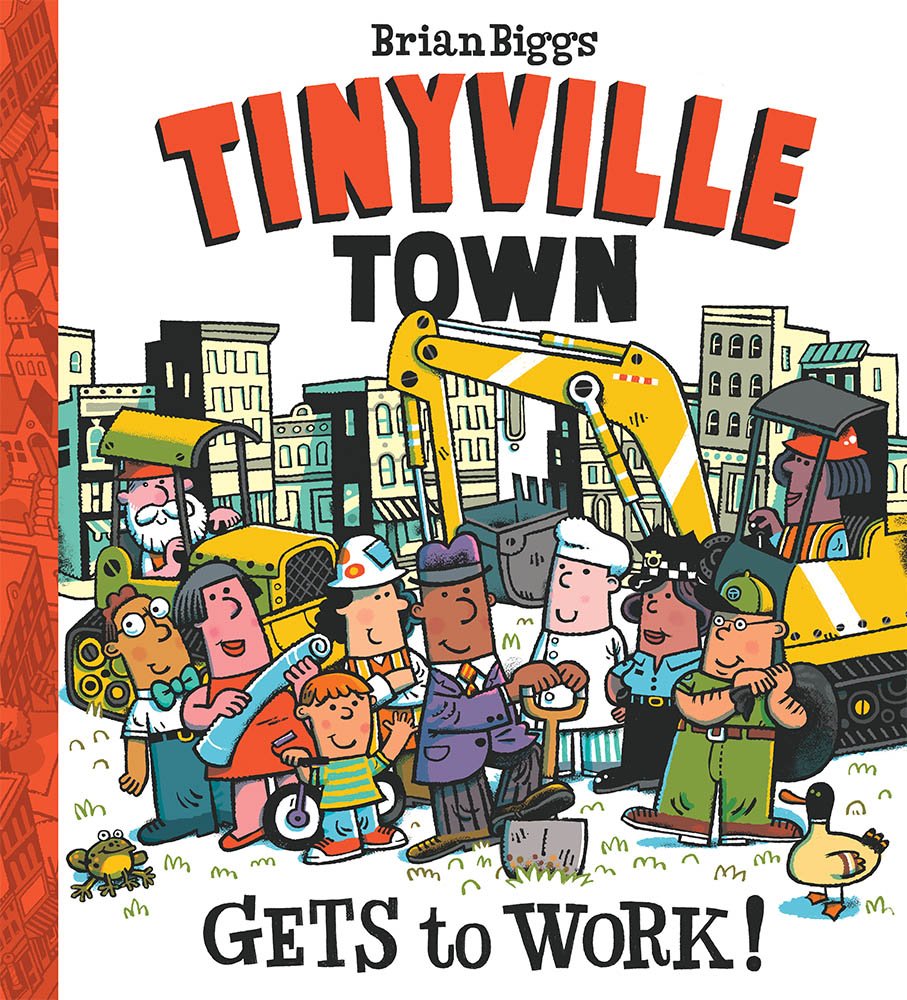 The Tinyville Town series, new from New York Times bestselling author and illustrator Brian Biggs, launches with three books: Tinyville Town Gets to Work!, a world-establishing picture book that introduces the town and its many residents, and two board books, I’m a Veterinarian and I’m a Firefighter. The series is set in a cozy community where the people are kind, everyone says hello when they’re walking down the street, the bus is always on time, and all the townsfolk do their part to keep things running smoothly. Everyone has a job to do in Tinyville Town. With a nod to the busy world of Richard Scarry and the neighborhood feel of Sesame Street, this new series will become a favorite read for preschoolers and is ideal for story time and class discussions about occupations and community helpers. Tinyville Town is a growing, thriving city full of interesting people. The townsfolk can’t wait to show readers around! In Tinyville Town Gets to Work!, we see the evolution of a construction project to solve a problem. When there is a traffic jam on the Tinyville Town bridge, the residents decide to work together to build a new one. By following the hard work of the engineers and construction workers, readers will get to meet many different people in the town while watching the exciting new bridge take shape. The large picture book format and Biggs’s bright art brilliantly show the bridge, which was extensively researched to make it authentic for readers. Every town has a bridge, and a trip over Tinyville’s new one will be fun for kids time and time again.