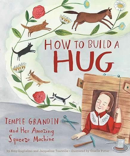 Amy Guglielmo, Jacqueline Tourville, and Giselle Potter come together to tell the inspiring story of autism advocate Dr. Temple Grandin and her brilliant invention: the hug machine.As a young girl, Temple Grandin loved folding paper kites, making obstacle courses, and building lean-tos. But she really didn’t like hugs. Temple wanted to be held—but to her, hugs felt like being stuffed inside the scratchiest sock in the world; like a tidal wave of dentist drills, sandpaper, and awful cologne, coming at her all at once. Would she ever get to enjoy the comfort of a hug? Then one day, Temple had an idea. If she couldn’t receive a hug, she would make one…she would build a hug machine!