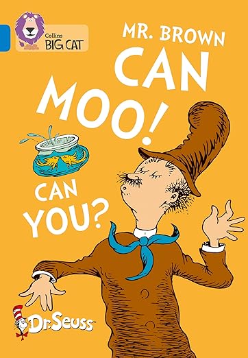 Oh, the wonderful things Mr. Brown can do!In this "Book of Wonderful Noises," Mr. Brown struts his stuff, as he imitates everything from popping corks to horse feet ("pop pop pop pop" and "klopp klopp klopp," respectively) while inviting everyone to join him in the fun.Young readers who are still learning their sounds and letters will get a wacky workout as they follow along with the very serious-looking, squinty-eyed Mr. Brown. Whether it's eggs frying in a pan or a hippo chewing gum, the skillful Mr. Brown just keeps topping himself, with a "sizzle sizzle" or a "grum grum grum." "Mr. Brown is so smart he can even do this: he can even make a noise like a goldfish kiss!... pip!"As usual, the words and pictures of Dr. Seuss make reading (and making all sorts of funny noises) impossible to resist. Mr. Brown Can Moo! Can You? will stay fresh through many a giggling reading.