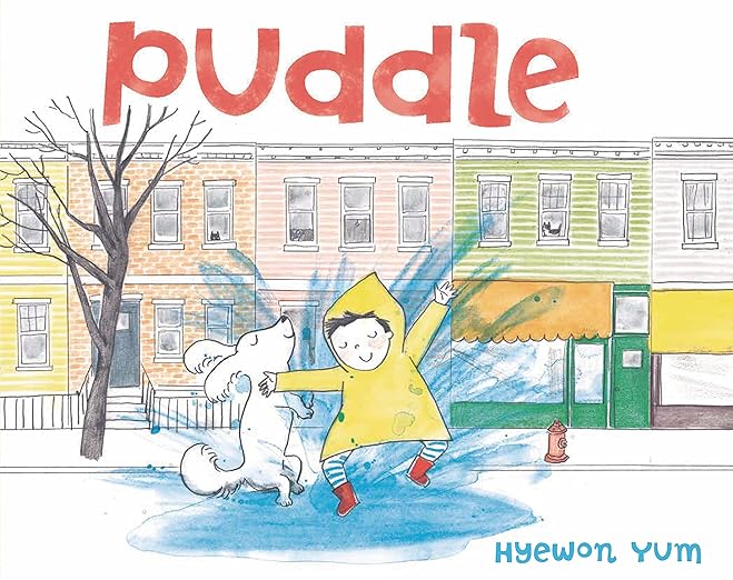 One rainy day, a little boy is upset because he can't go out and play. His mom comes up with a way to keep him entertained--by drawing a picture of herself and him going outside, playing in the rain, and splashing in a giant puddle. They have so much fun drawing themselves that they decide to venture out and make the most of the rainy weather.
