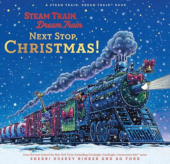 A NATIONAL INDIE BESTSELLERAll aboard the dream train as the crew prepares for its next stop—Christmas! From the author of the Goodnight, Goodnight, Construction Site series, the long-awaited sequel to the #1 New York Times bestseller Steam Train, Dream Train is here at last.'Tis the season for sharing delicious treats, singing Christmas carols, dazzling the world with sparkly decorations, wrapping gifts, delivering packages, and so much more. On the dream train, the workers know their tasks by heart, for when each new December starts, the Christmas Train takes to the air, transporting magic everywhere.Setting off on an epic journey of holiday cheer, the crew goes full steam ahead celebrating Christmas, inviting little readers to say goodnight to their favorite animals before tucking in for sweet holiday dreams. Sherri Duskey Rinker and AG Ford—the author-illustrator team behind many of the bestsellers in the Goodnight, Goodnight Construction Site series—bring their playful rhyming text and vibrant illustrations to a merry bedtime book sure to become a family favorite and a new holiday classic.CHRISTMAS BOOK FOR KIDS: Full of exciting animals and Christmas cheer, with the ever-present appeal of the iconic dream train, this bedtime book makes a great gift for train enthusiasts and young readers who love holiday stories.JUST RIGHT FOR READING ALOUD: Lyrical prose and evocative rhymes, paired with vibrant, dreamy artwork, make this bedtime story a tremendously satisfying read-aloud experience. It’s perfect for engaging little ones who love trains and animals before lulling them to sleep at the end of a charming holiday adventure.NEW YORK TIMES BESTSELLING CREATORS: Sherri Duskey Rinker is the author of numerous #1 New York Times bestsellers, including Goodnight, Goodnight Construction Site and Steam Train, Dream Train. AG Ford has illustrated many award-winning and bestselling books for children, including Construction Site on Christmas Night, Three Cheers for Kid McGear!, and Construction Site: Taking Flight!Perfect for:Kids who love trainsFans of holiday classics like The Polar ExpressAnyone who loves animals and animal picture booksParents, grandparents, teachers, and librarians looking for engaging bedtime booksGift-givers looking for beautiful Christmas booksFans of Steam Train, Dream Train and other Sherri Duskey Rinker books