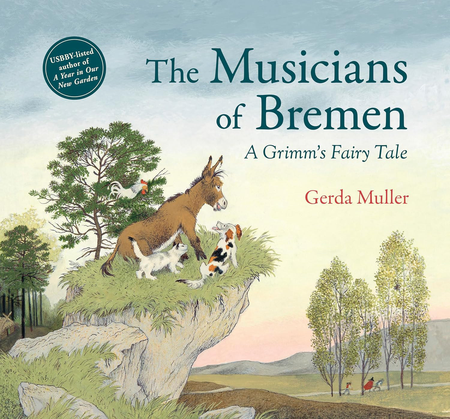 A classic Brothers Grimm fairy tale, re-imagined by renowned illustrator Gerda Muller, creator of USBBY-honored A Year in Our New Garden. Four unlikely companions – a donkey, a dog, a cat and a rooster – leave behind their old lives and set off on an adventure. When night falls the friends find a cabin in the forest where they could rest and eat – if it wasn't home to a band of robbers! Can the animals work together and use their musical voices to chase the thieves away? Children will love braying along with the donkey, barking with the dog, purring with the cat and crowing with the rooster in this beautifully illustrated story about teamwork and rediscovering your self-worth.