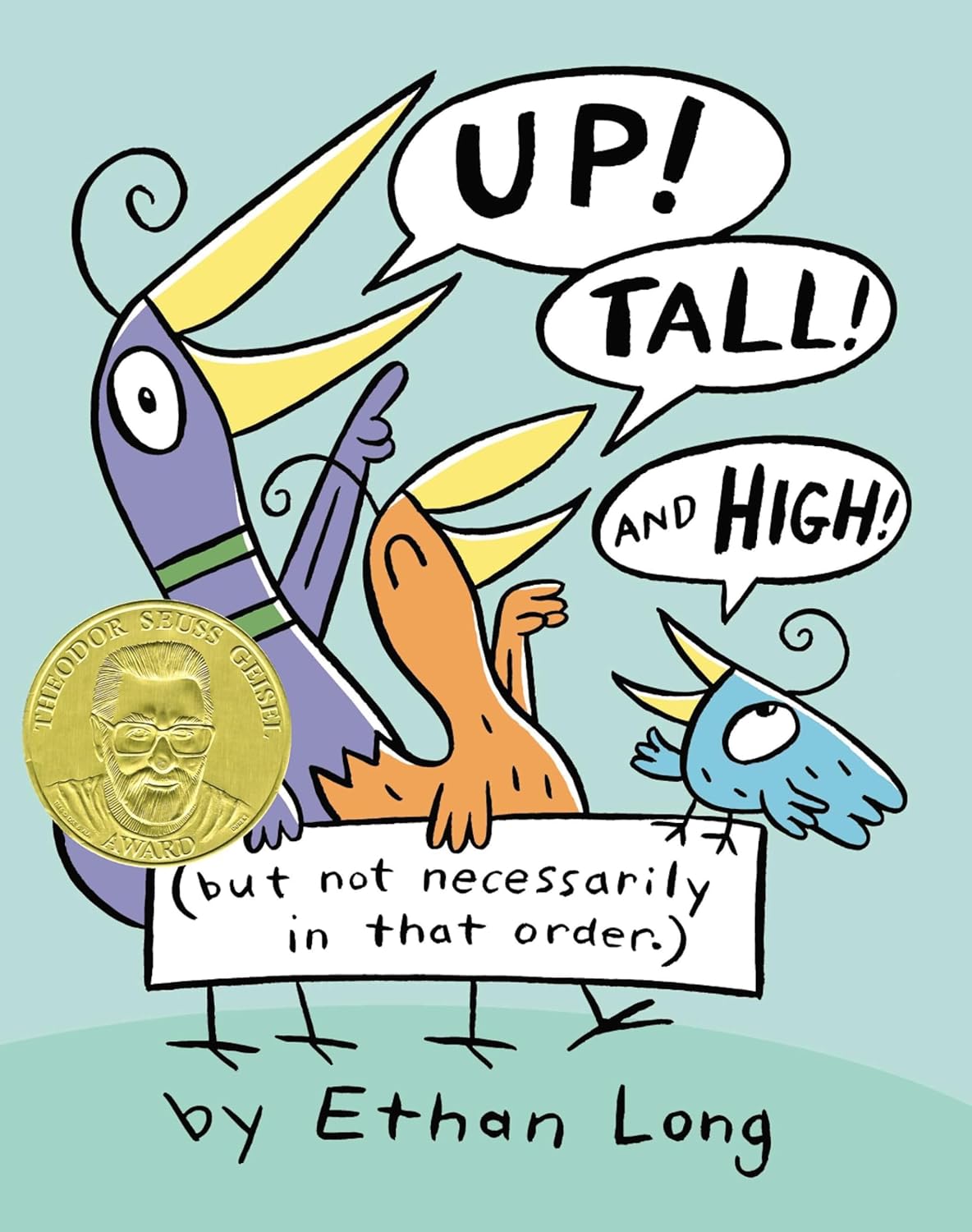 2013 Recipient of the Theodor Seuss Geisel Award!Three side-splitting stories in one great picture book! In three laugh-out-loud situations, an irresistible cast of colorful birds illustrate the concepts of "up," "tall" and "high." First, a short peacock proves that he may not be tall, but he definitely isn't small. Then, a resourceful bird helps his penguin friend find a way to fly. Finally, two birds want to live in the same tree, but what goes up must come down! Each short story features a flap that reveals a surprise twist. With fun fold-outs, easy-to-read text, and a hilarious cast of characters, these stories beg preschoolers and emerging readers to act them out again and again.